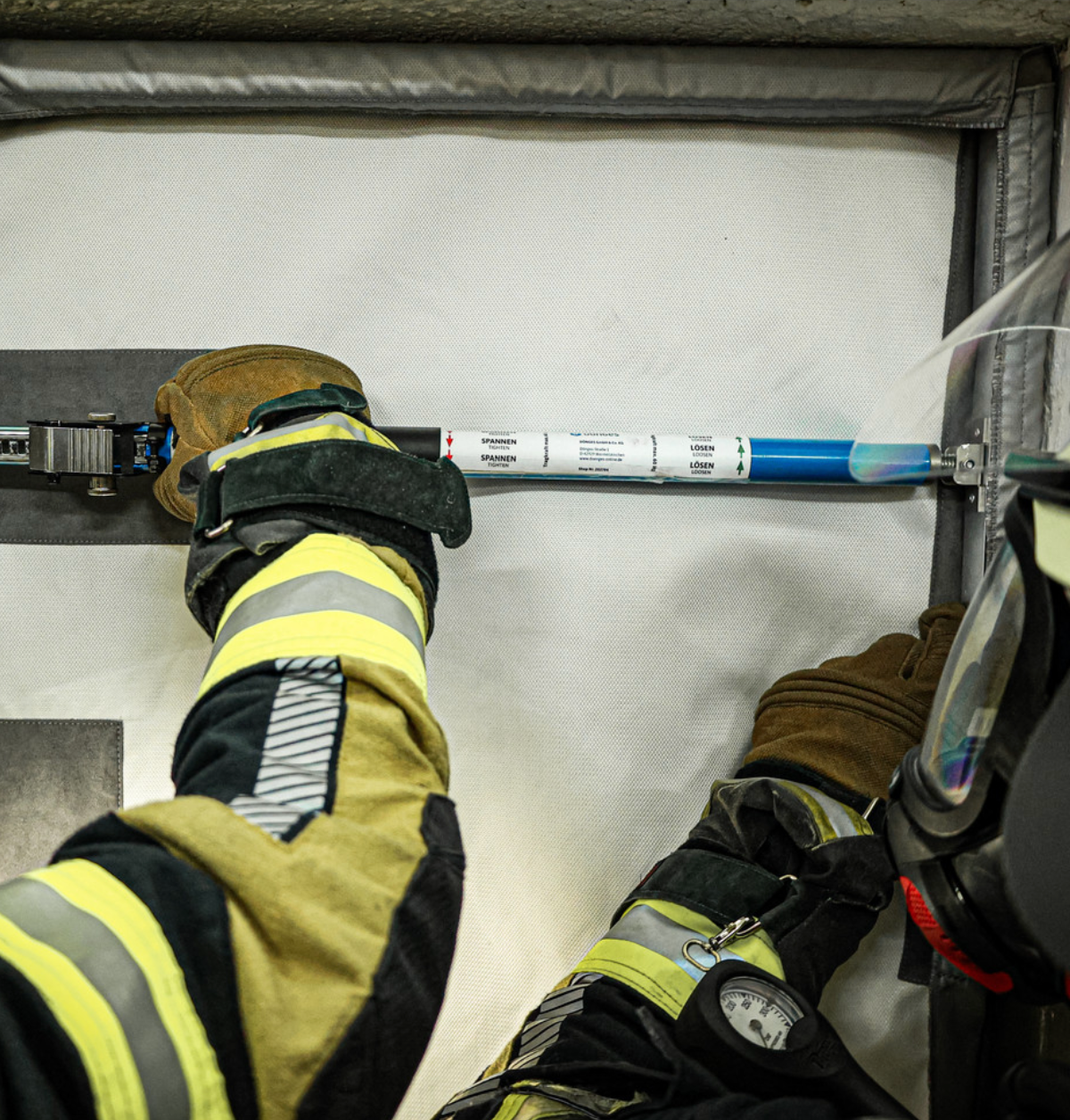 Der Dönges Smoke Defender ist ein unverzichtbares Hilfsmittel für den Feuerwehr Einsatz, um die Ausbreitung von Rauch und Hitze in Gebäuden gezielt zu verhindern. Dieser mobile Rauchschutzvorhang wird an Türöffnungen befestigt und sorgt dafür, dass Flucht- und Rettungswege weitgehend rauchfrei bleiben.